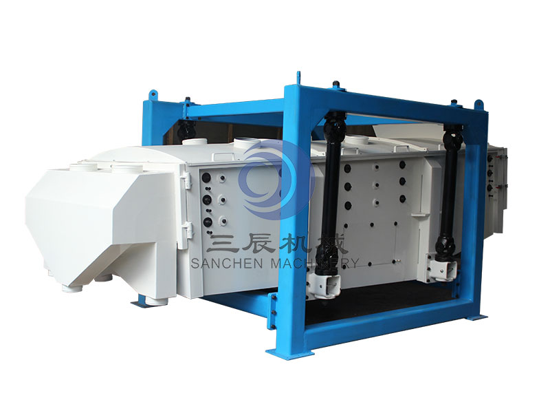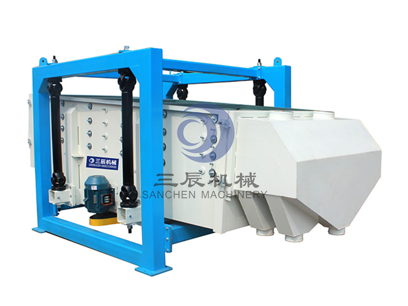 篩機(jī)啟動(dòng)后,篩機(jī)搖動(dòng)體即篩箱在慣性力的作用下作前后往復(fù)運(yùn)動(dòng),篩箱帶動(dòng)篩面作周期性搖動(dòng),從而使篩面上的物料隨篩箱一同作定向跳式運(yùn)動(dòng),期間,小于篩面孔徑的物理通過篩孔落到下層,成為篩下物,大于篩面孔徑的物料經(jīng)連續(xù)翻滾跳運(yùn)動(dòng)后從排料口排出,完成篩分工作。